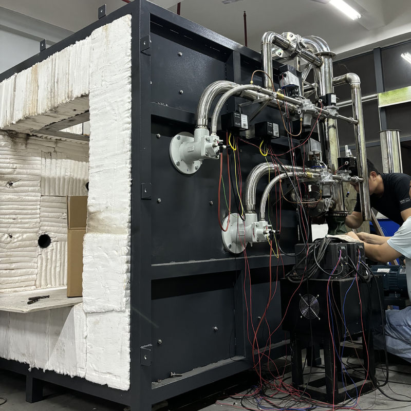 6. Sistema de alivio de presión: 6.1 Hay orificios de escape de humos instalados en el lado trasero de la pared del horno, conectados a la tubería de escape de humos, para controlar la presión dentro del horno descargando el humo dentro del horno. El suministro de aire y el escape dentro del horno son controlados por un ventilador potente de 0,3kw y un convertidor de frecuencia, y el volumen de aire se controla automáticamente mediante un programa informático para cumplir con los requisitos de combustión, presión y escape de humos; 6.2 Tubería de liberación de presión: La sección dentro del horno está hecha de tuberías de acero inoxidable SUS310S resistentes a altas temperaturas con un diámetro de 300 mm, capaces de soportar temperaturas de hasta 1300 ℃. Utilice tuberías soldadas con un espesor de pared de 5 mm fuera del horno; 6.3 Potencia de liberación de presión: Ventilador de alta presión resistente a altas temperaturas AC220, 0.3kw; 6.4 Control de la presión del horno y adquisición de datos, la presión del horno puede garantizar el control en tiempo real formando un bucle de control con el sistema de escape de humos de acuerdo con los requisitos de los estándares anteriores.